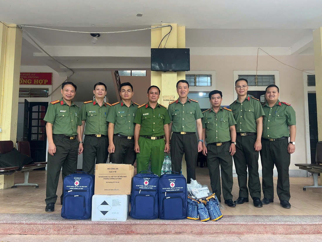 Những hoạt động thiết thực, ý nghĩa, kịp thời của Cục Y tế, Bộ Công an nhằm động viên cán bộ, chiến sĩ Công an các xã trên địa bàn tỉnh Nghệ An trong quá trình thực hiện nhiệm vụ hỗ trợ người dân khắc phục hậu quả mưa lũ sau bão và phòng, chống dịch bệnh cũng như công tác bảo đảm an ninh, trật tự, góp phần cùng các cấp, các ngành chung tay thực hiện tốt nhiệm vụ phòng chống lụt bão, bảo vệ an toàn tính mạng, tài sản của Nhân dân.