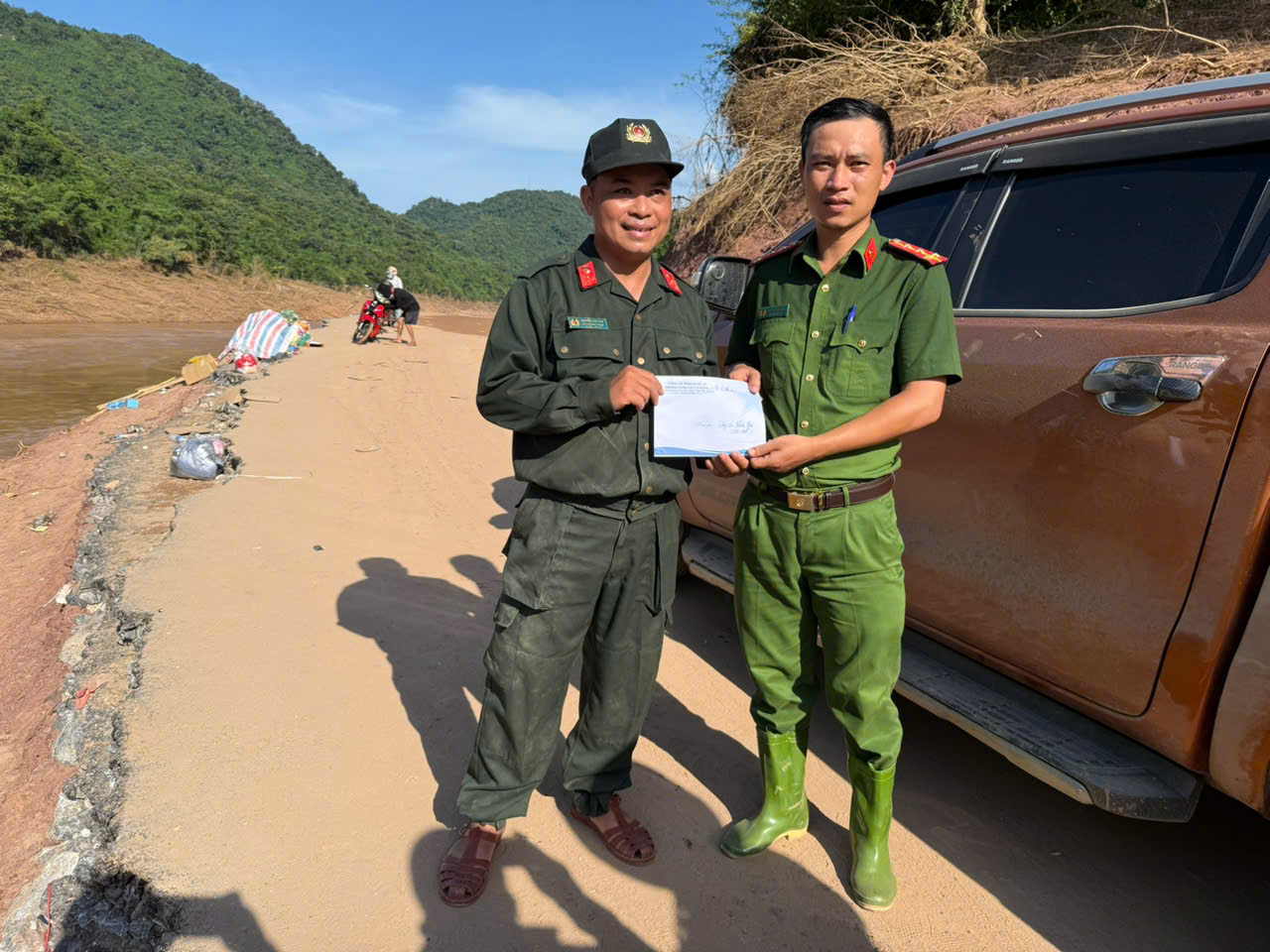 Tại xã Nhôn Mai - nơi bị ảnh hưởng nặng nề do trận lũ lịch sử vừa qua, Đoàn cũng đã trao tiền hỗ trợ một hoàn cảnh bị thiệt hại về người. Đồng thời, trao món quà gửi tặng lực lượng Công an xã Nhôn Mai.