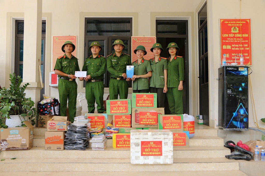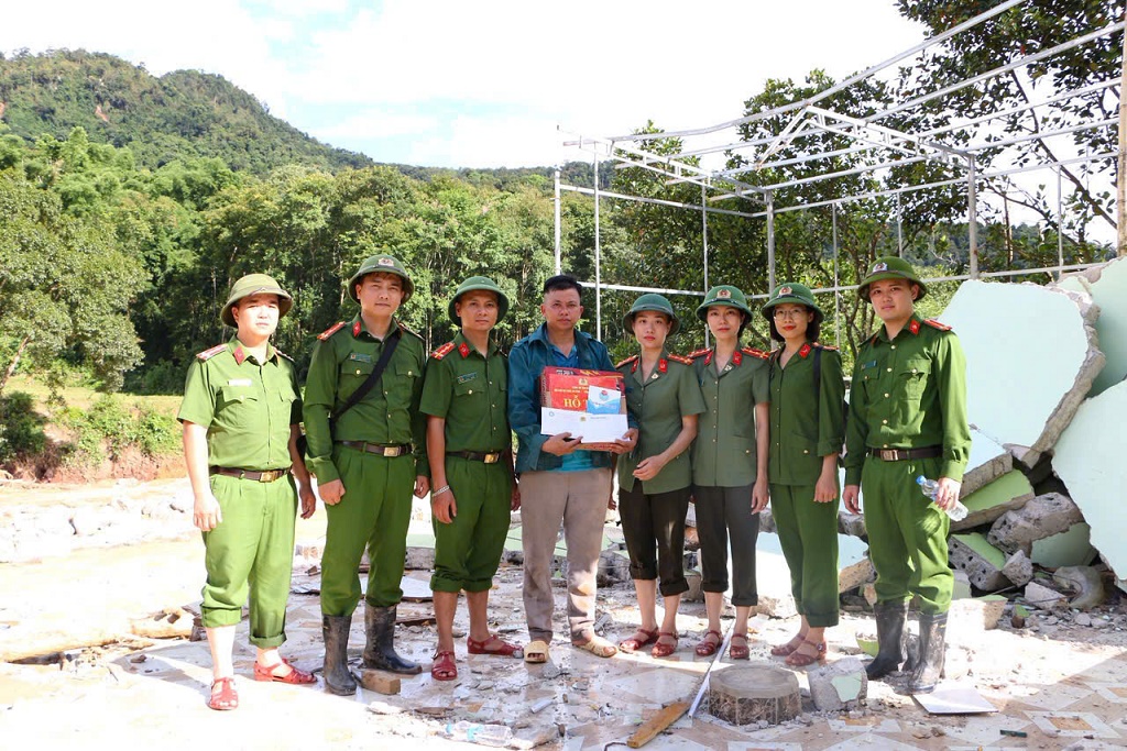Thấu hiểu nỗi đau và mất mát của đồng bào vùng cao cũng như chia sẻ với cán bộ chiến sĩ đang công tác tại nơi vùng lũ, Ban Phụ nữ Công an tỉnh Nghệ An đã tổ chức Đoàn công tác trực tiếp đến xã Mỹ Lý, xã Nhôn Mai để trao tặng nhiều phần quà ý nghĩa, nhằm sẻ chia với người dân vùng lũ. Đoàn đã vượt qua hàng chục km đường rừng, nhiều điểm sạt lở, bùn đất lầy lội, băng qua dòng sông Nậm Nơn mang theo các suất quà và tiền mặt để trao tận tay bà con tại các bản chịu ảnh hưởng nặng nề như bản Huồi Tố 2, bản Na Hang, bàn Huồi Xá (xã Nhôn Mai). Đồng thời, Đoàn cũng tặng quà bà con trên tuyến Quốc lộ 7 và Trung tâm y tế huyện Tương Dương (cũ).