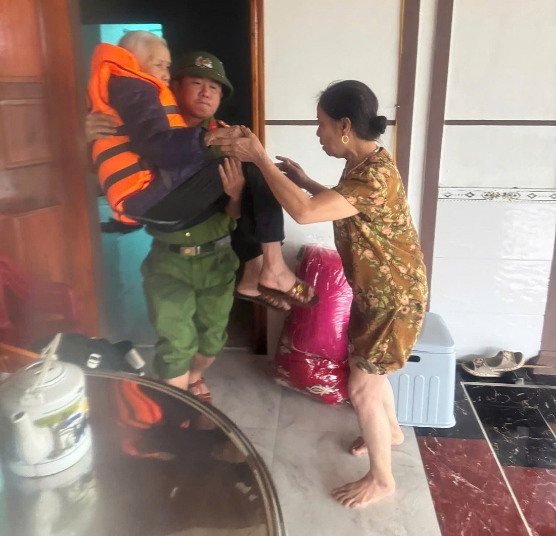 | Công an xã Tân An khẩn trương hỗ trợ người dân di tán trong quá trình nước lũ trên địa bàn đang lên nhanh |
