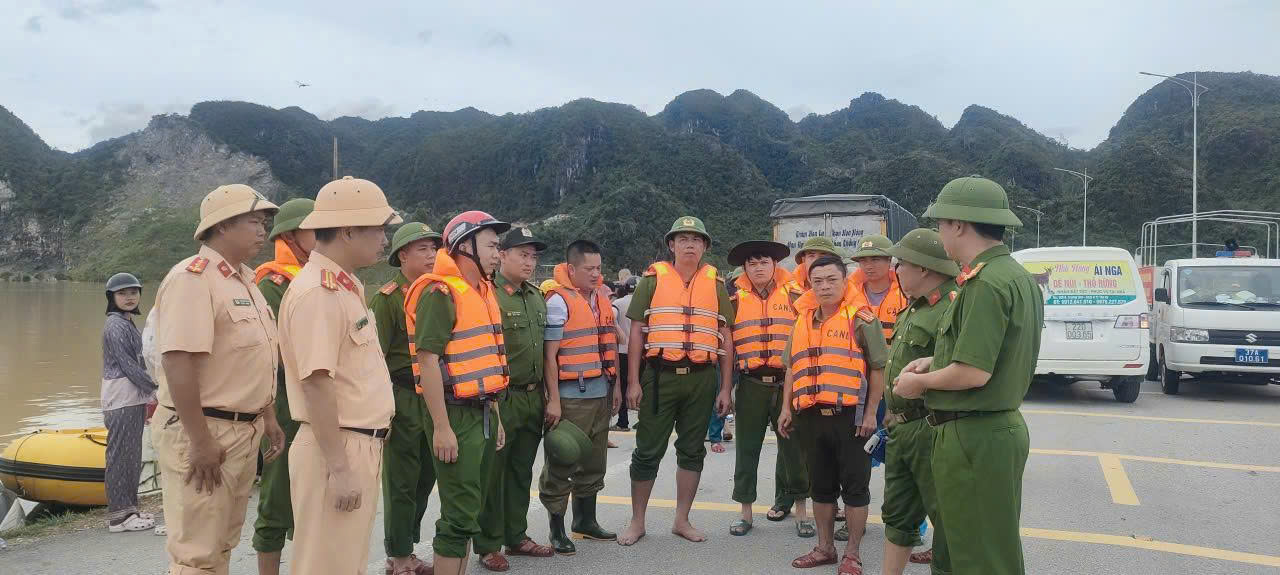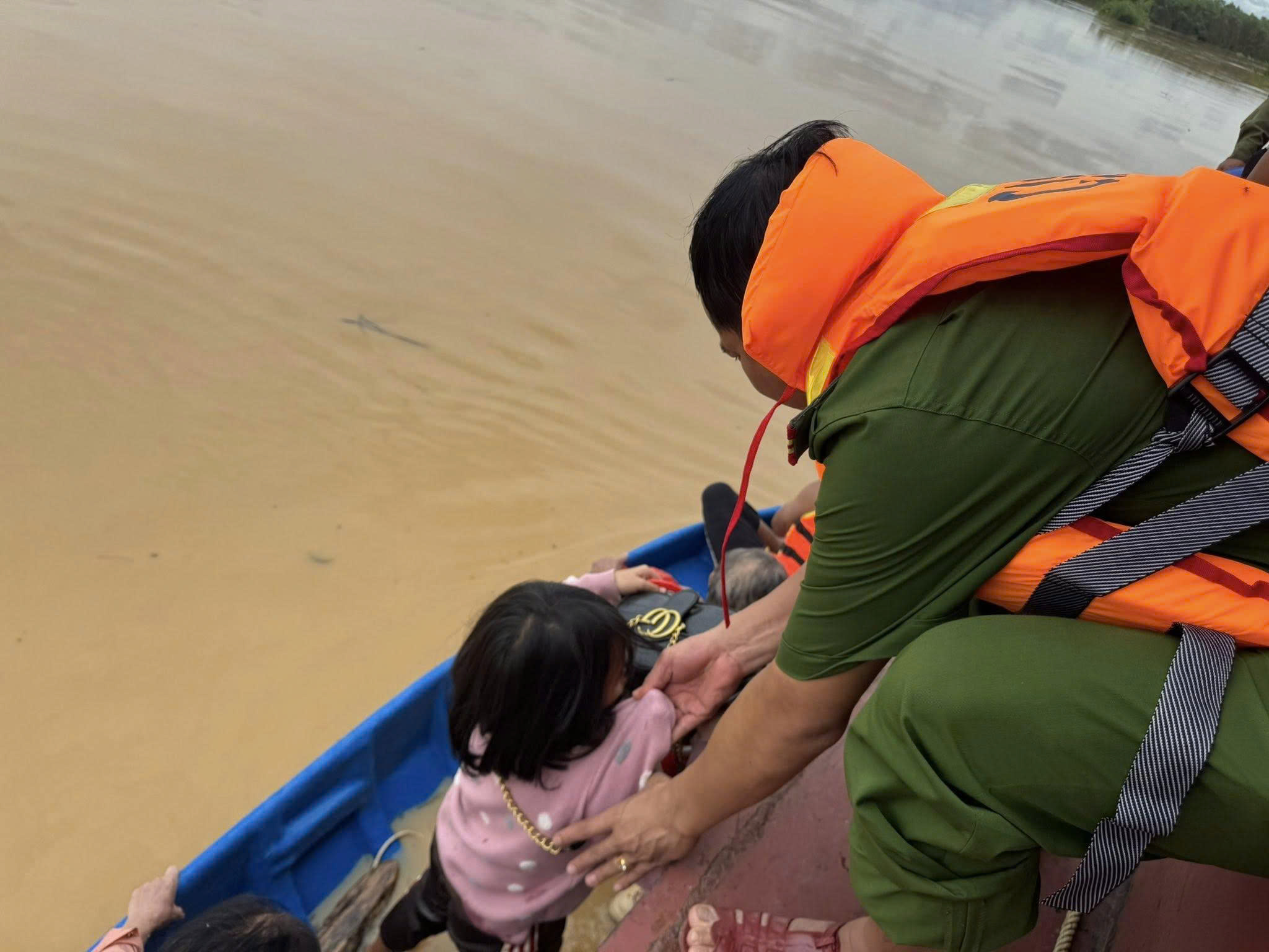 | Công an xã Tân An phối hợp cùng lực lượng chức năng hỗ trợ người dân sơ tán đến nơi an toàn |