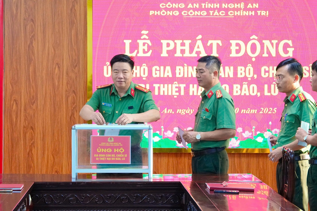 Thời gian qua, tình hình mưa bão, lũ lụt, đặc biệt là cơn bão số 10 đã gây thiệt hại nghiêm trọng tại nhiều địa phương trên địa bàn tỉnh Nghệ An; trong đó không ít gia đình cán bộ, chiến sĩ Công an tỉnh nói chung và Phòng Công tác chính trị nói riêng bị ảnh hưởng nặng nề về nhà cửa, tài sản và đời sống sinh hoạt. Trước tình hình đó, phát huy truyền thống đoàn kết, tinh thần “tương thân tương ái” và đạo lý “lá lành đùm lá rách” của dân tộc, Phòng Công tác chính trị đã tổ chức Lễ phát động ủng hộ nhằm kịp thời sẻ chia, hỗ trợ gia đình các đồng chí không may gặp khó khăn do thiên tai.