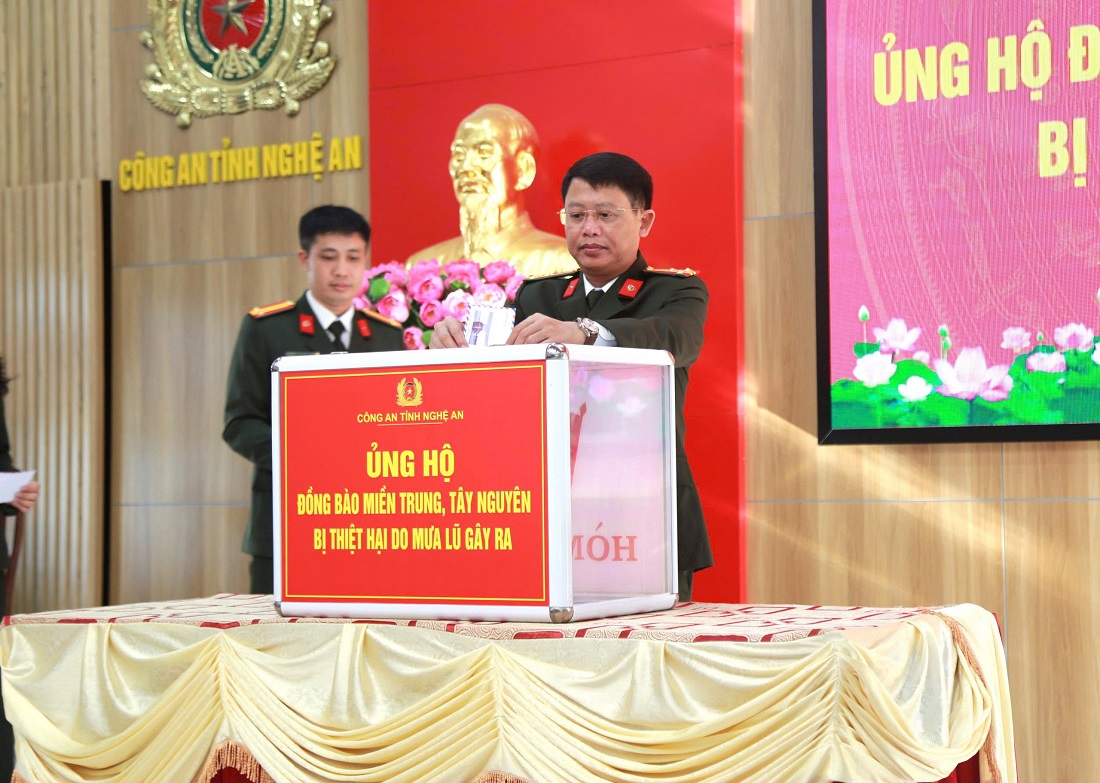 Xuất phát từ tình hình trên, Bộ Công an đã phát động quyên góp ủng hộ đồng bào miền Trung, Tây Nguyên khắc phục hậu quả do mưa lũ gây ra. Quán triệt tinh thần đó, ngay sau Lễ phát động của Bộ, Công an tỉnh tổ chức Lễ phát động trong toàn lực lượng Công an Nghệ An nhằm lan tỏa tinh thần “tương thân, tương ái”, “lá lành đùm lá rách”, góp phần chia sẻ khó khăn với Nhân dân và cán bộ, chiến sĩ Công an tại các địa phương bị thiệt hại nặng nề.