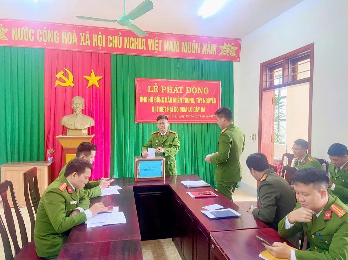 (Congan.nghean.gov.vn)-Hưởng ứng lời kêu gọi của Bộ trưởng Bộ Công an, Giám đốc Công an tỉnh, sáng 15/12/2025, Công an xã Đại Huệ tổ chức Lễ phát động ủng hộ đồng bào miền Trung, Tây Nguyên bị thiệt hại do mưa lũ gây ra.