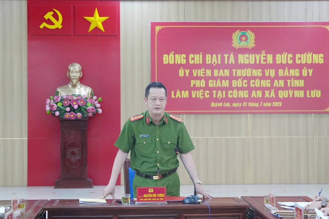 (Congan.nghean.gov.vn)-Đó là chỉ đạo của đồng chí Đại tá Nguyễn Đức Cường, Ủy viên Ban thường vụ Đảng ủy, Phó Giám đốc Công an tỉnh tại buổi làm việc với Công an xã Quỳnh Lưu vào chiều 31/7/2025.
