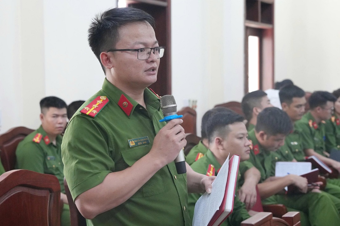 | Chỉ huy, cán bộ, chiến sĩ Công an xã Quỳnh Lưu phát biểu ý kiến |