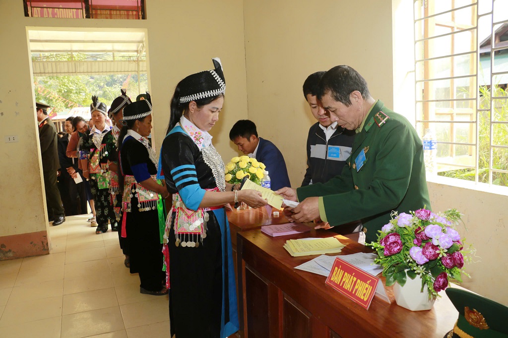 Theo ghi nhận, nhiều cử tri chủ động đến điểm bỏ phiếu trước giờ khai mạc. Tạm gác lại công việc thường ngày, có người địu con nhỏ trên lưng đến khu vực bỏ phiếu. Với cử tri già yếu, bệnh tật không đi lại được, để đảm bảo quyền bầu cử, lực lượng Công an phối hợp với tổ chức, đoàn thể mang hòm phiếu phụ và phiếu bầu đến tận nhà, thông tin, hướng dẫn và hỗ trợ tận tình, giúp cử tri tự tay bỏ phiếu.