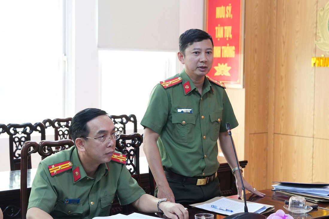 | Đại diện lãnh đạo phòng chuyên môn Công an tỉnh phát biểu |